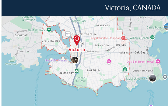 캐나다 서부 죠지아 해협을 둘러싸고 있는 밴쿠버섬의 남단에 위치하며, 브리티시 컬럼비아 주의 주도입니다. 밴쿠버에서 항공으로 약 20분, 페리로 약 1시간 30분 정도 소요되며,